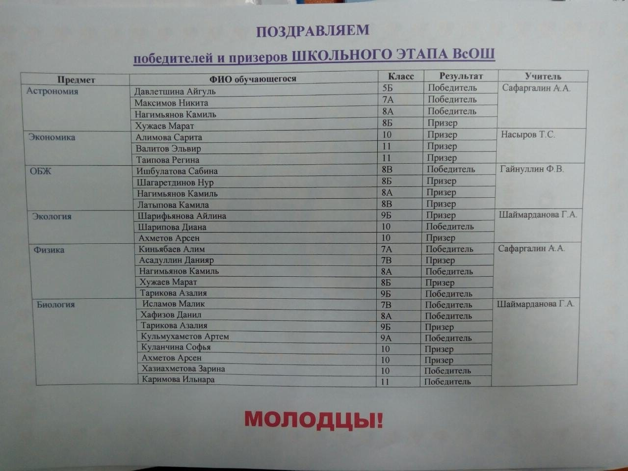 Победители и призеры школьного этапа Всероссийской олимпиады школьников На сегодняшний день стали известны победители и призеры школьного этапа Всероссийской олимпиады школьников по следующим предметам: