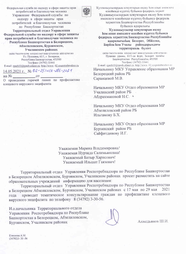 О ПРОВЕДЕНИИ ГОРЯЧЕЙ ЛИНИИ ПО ПРОФИЛАКТИКЕ КЛЕЩЕВОГО ВИРУСНОГО ЭНЦЕФАЛИТА
