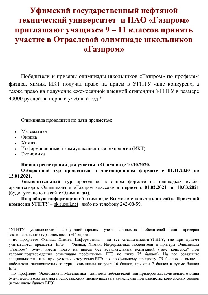 Отраслевая олимпиада школьников “Газпром”