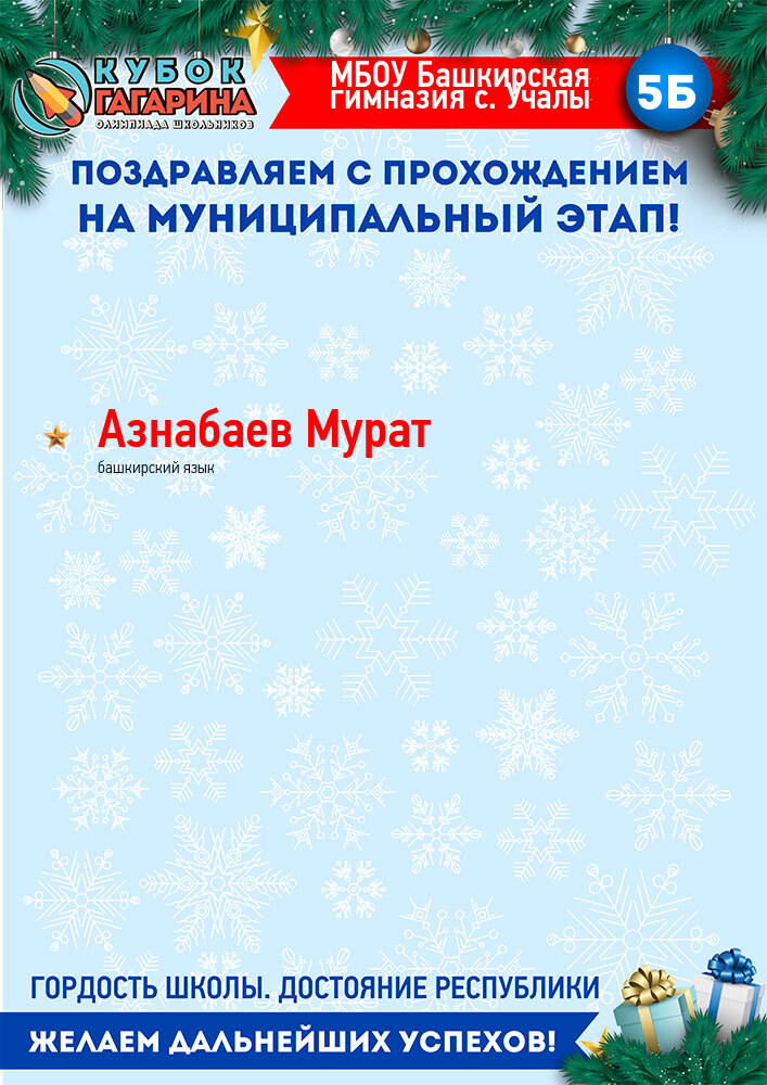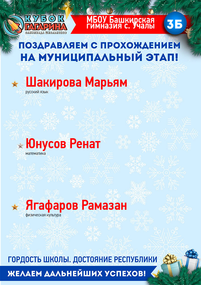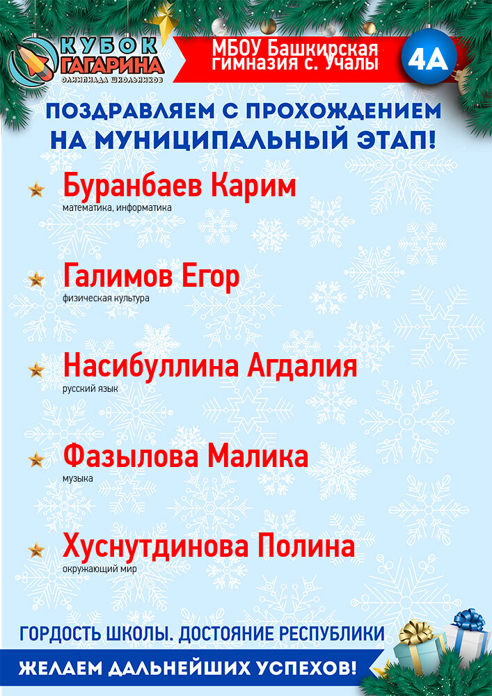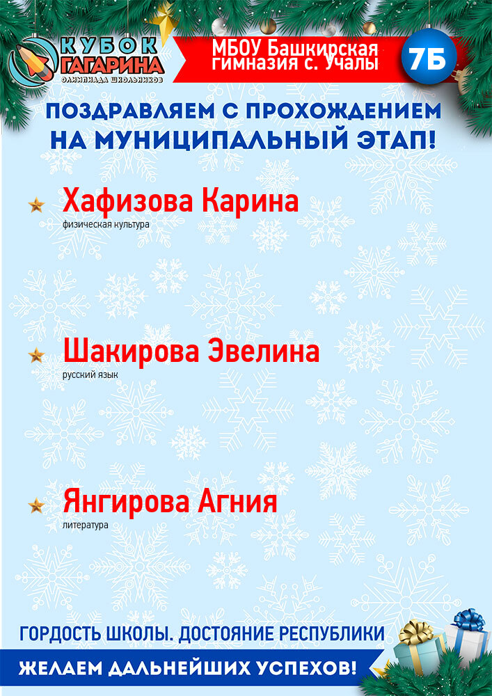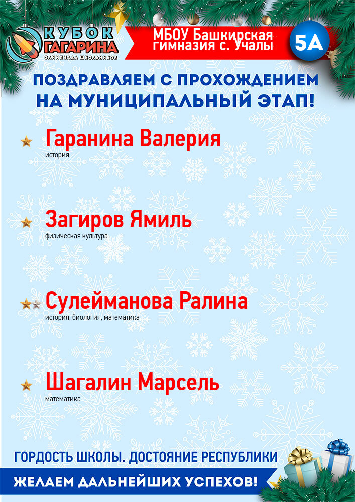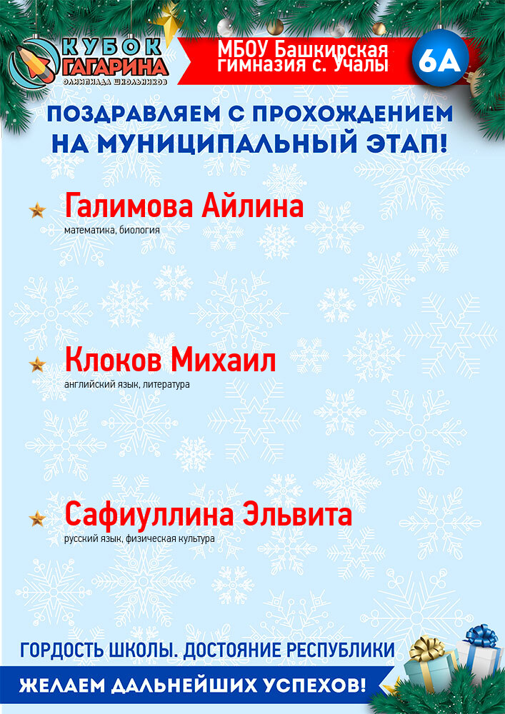 «Открытая межвузовская олимпиада для школьников 9-11 классов на Кубок имени Ю.А. Гагарина» – это совместный проект ведущих вузов Республики, Государственной корпорации по космической деятельности «Роскосмос», Государственного Собрания-Курултая и Правительства Республики Башкортостан.